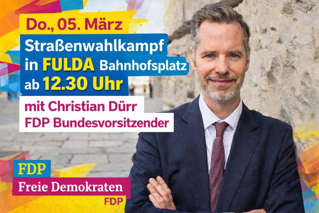 05. März: Straßenwahlkampf am Bahnhofsplatz in Fulda mit FDP-Bundesvorsitzendem Christian Dürr