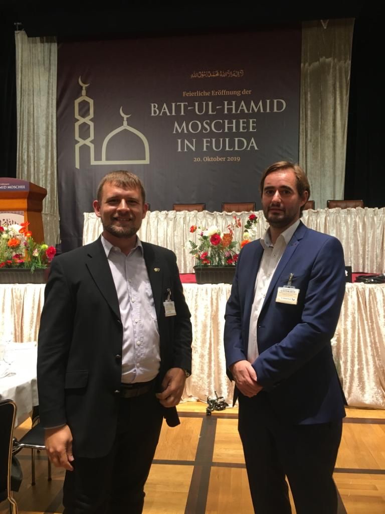 Eine dreiköpfige Delegation der Freien Demokraten hat an den Feierlichkeiten zur Eröffnung der Bait-Ul-Hamid-Moschee teilgenommen. Bei einem Empfang in der Orangerie Fulda durch das geistige Oberhaupt Kalif Hadhrat Mirza Masroor Ahmad bedankte sich dieser bei den Bürgern Fuldas für ihre Offenheit und Toleranz. Die zentrale Botschaft des Islams sei der Frieden und ein wahrer Muslim nur derjenige, der „Frieden stiften“ als Lebensaufgabe verinnerlicht habe. Für liberale Menschen steckt darin die Botschaft, nicht die sich in Deutschland zunehmend zeigenden Risse in der Gesellschaft weiter zu vertiefen, sondern vielmehr die Annäherung schwieriger Positionen als liberale Aufgabe zu verstehen.